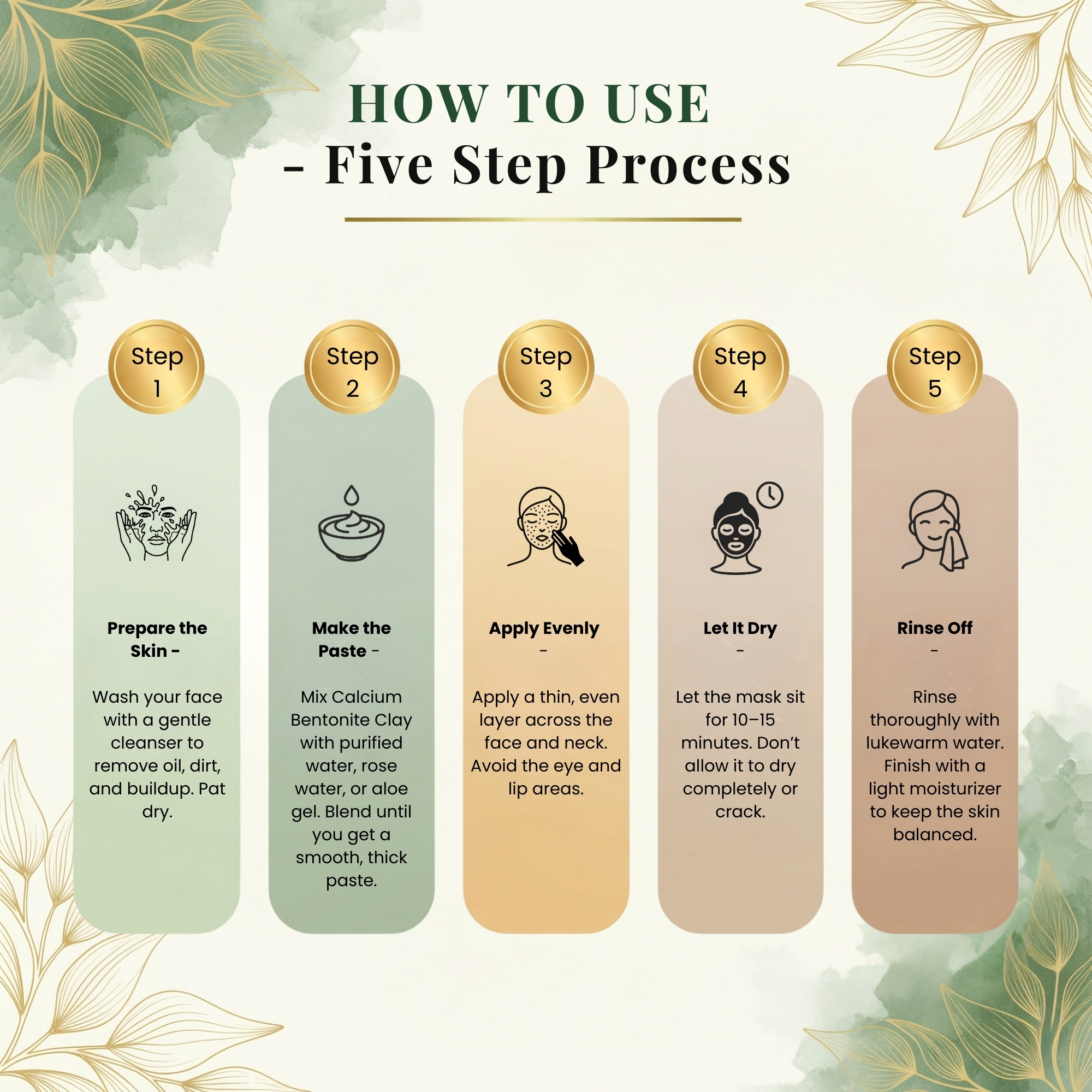 Mix Serbian Blue Clay with rose water, purified water, or aloe vera gel. Stir well until you get a smooth, creamy paste.