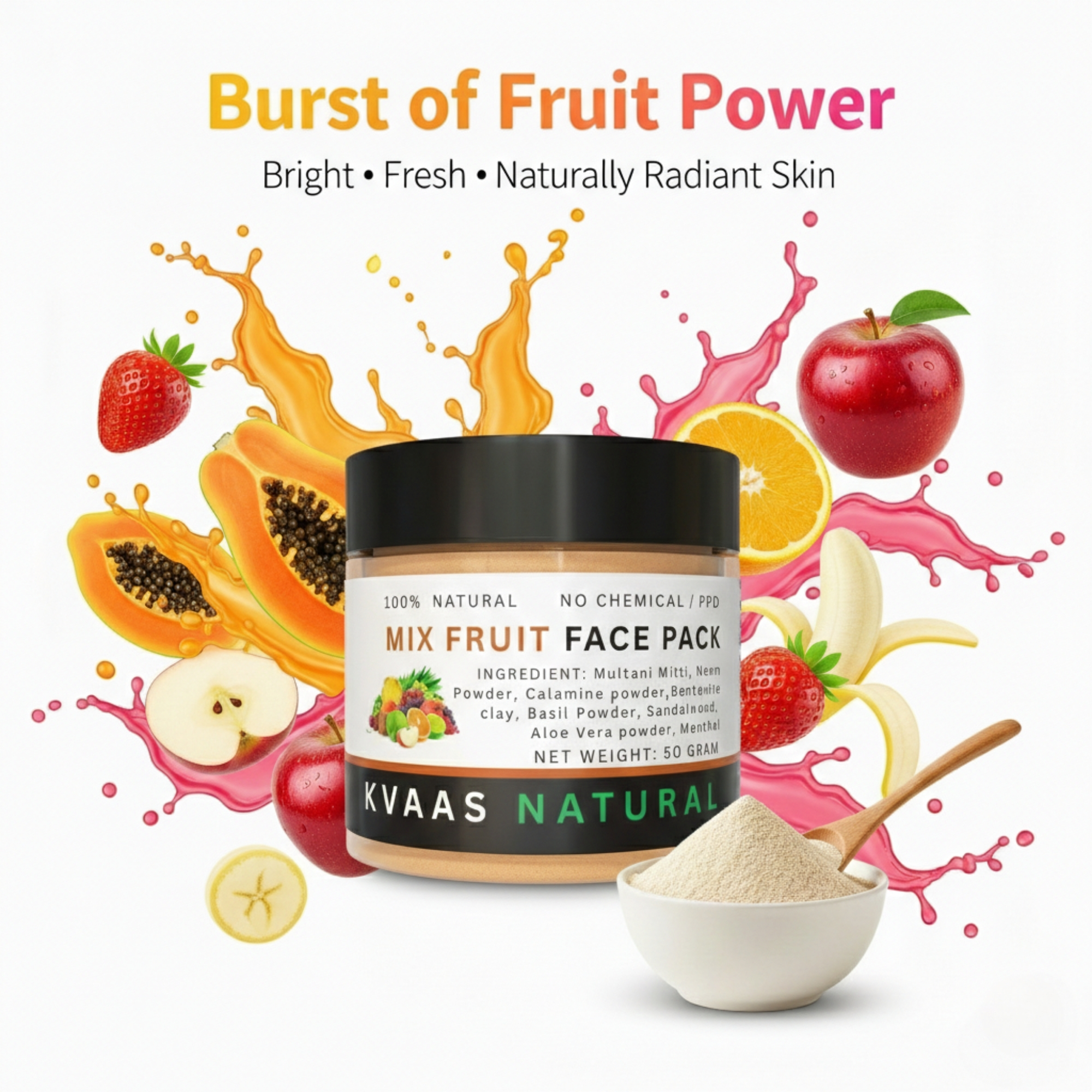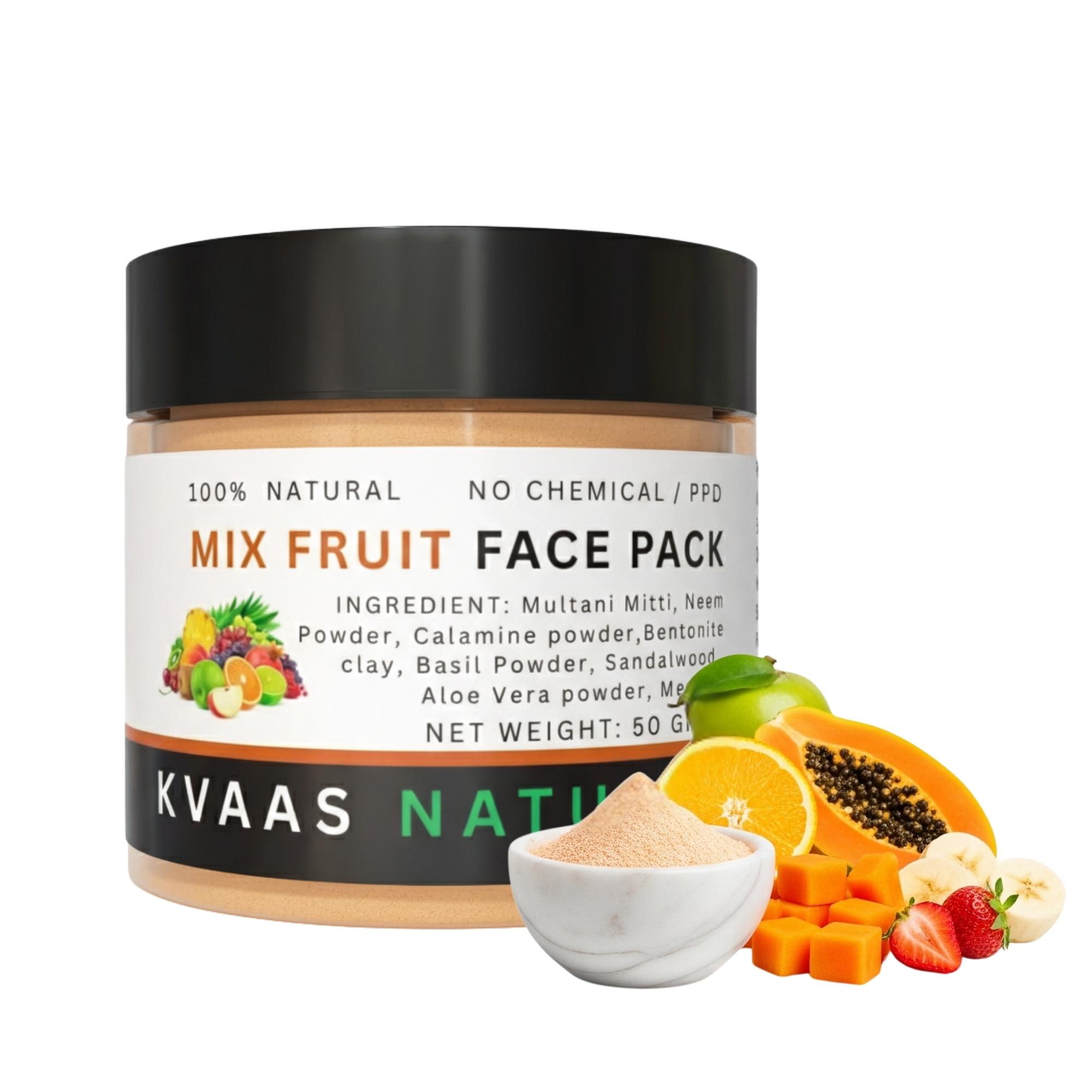Nourish and revitalize your skin with our Kvaas Natural Mix Fruit Face Pack, a blend of nature’s finest fruits. This nutrient-rich face pack combines the benefits of multiple fruits to provide deep hydration, exfoliation, and a radiant glow. Perfect for all skin types, it offers a luxurious skincare experience that leaves your skin feeling fresh, smooth, and rejuvenated.