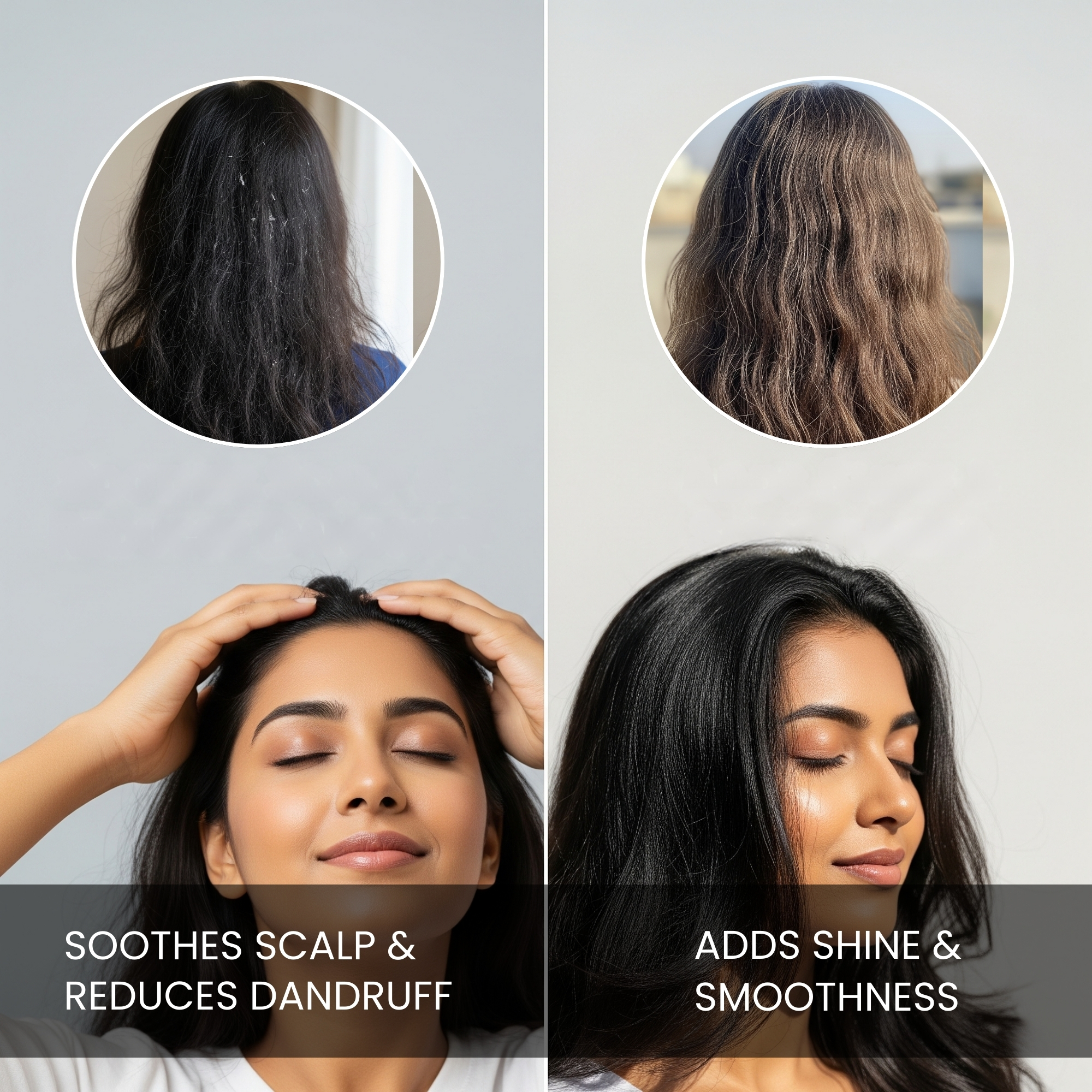 • Scalp Health: Helps soothe the scalp, reducing dandruff and itchiness.