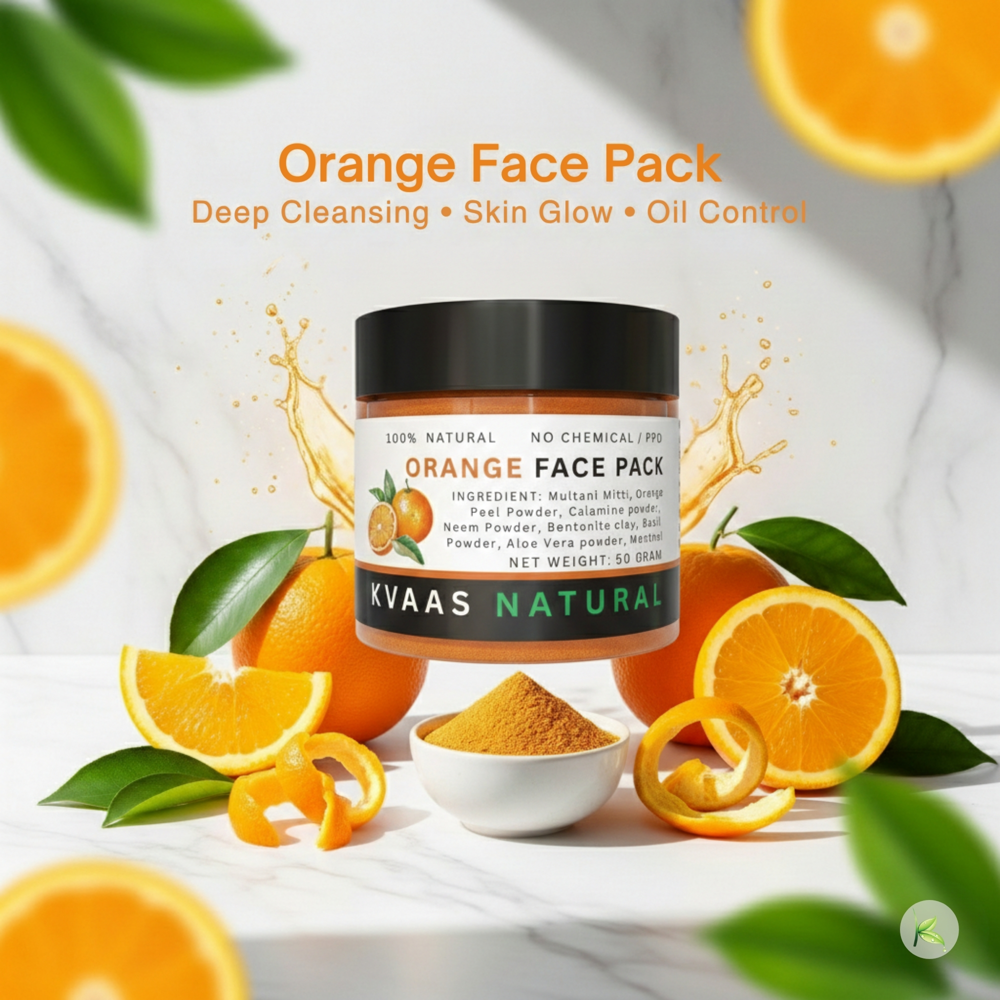 Brighten and revitalize your skin with our Kvaas Natural Orange Face Pack, made from the finest quality orange peel powder. Rich in vitamin C and antioxidants, oranges are known for their brightening and rejuvenating properties. This nutrient-rich, chemical-free face pack is perfect for hydrating, exfoliating, and refreshing your skin, leaving it looking radiant, smooth, and youthful.