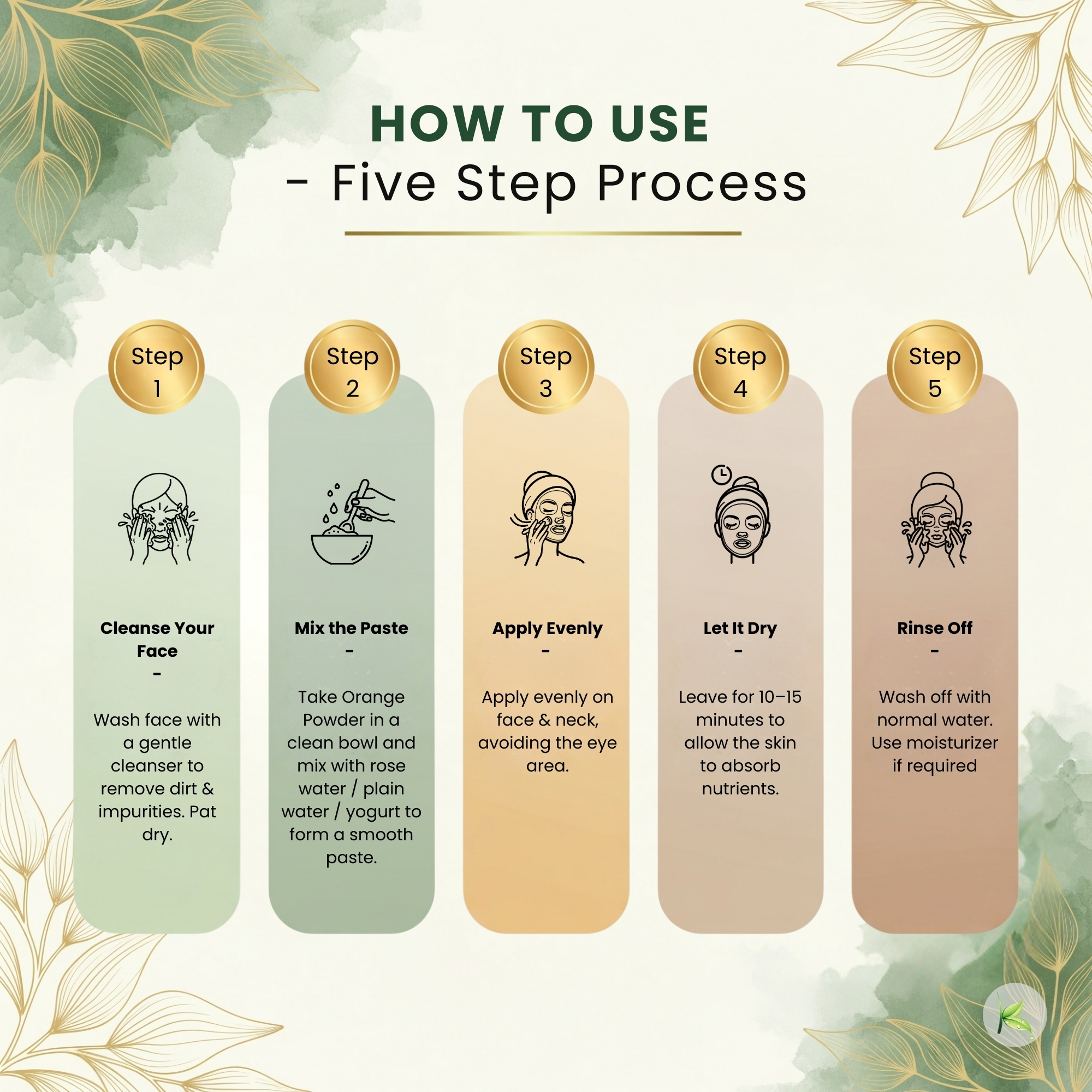 2. Mix a small amount of the Orange Face Pack with water or rose water to form a smooth paste.