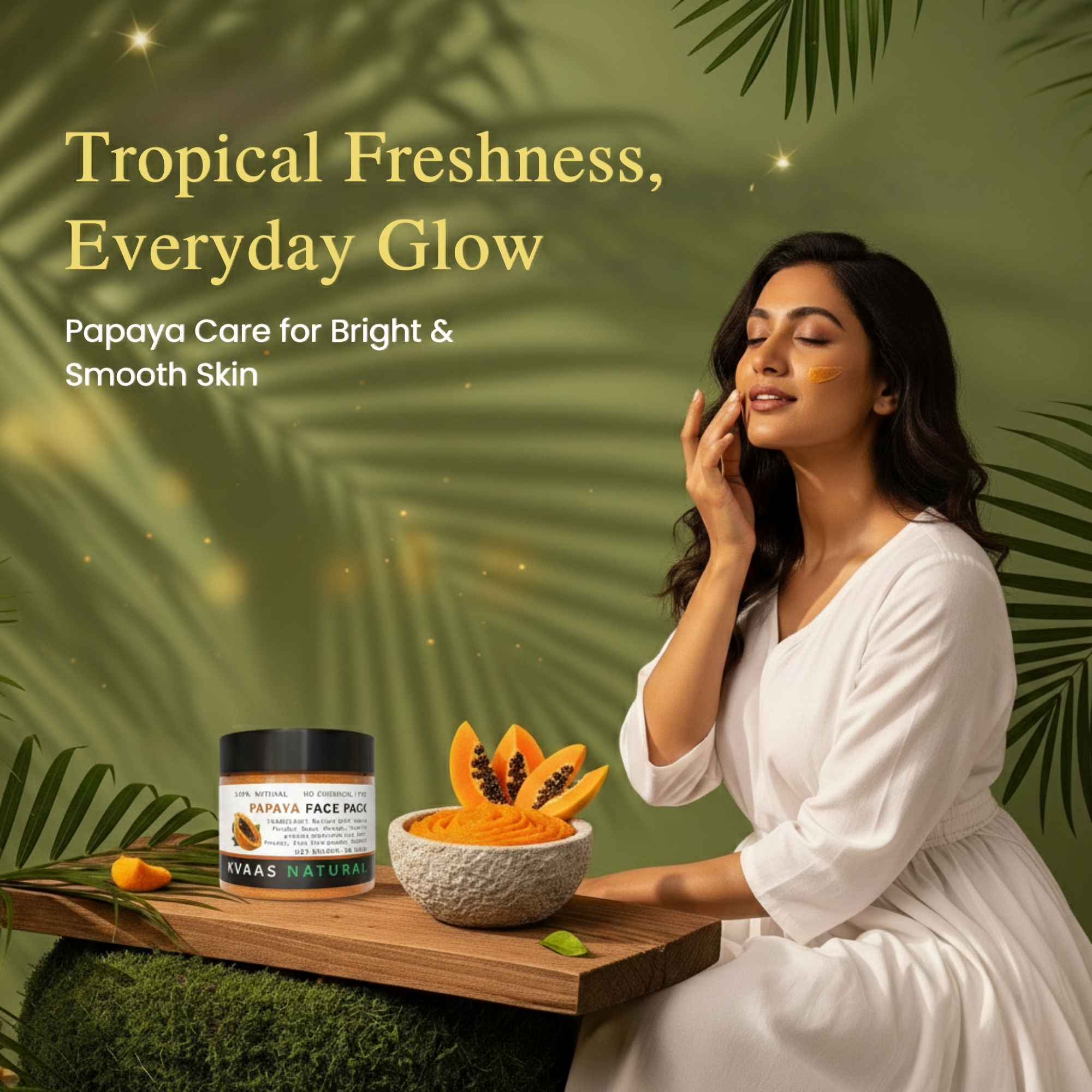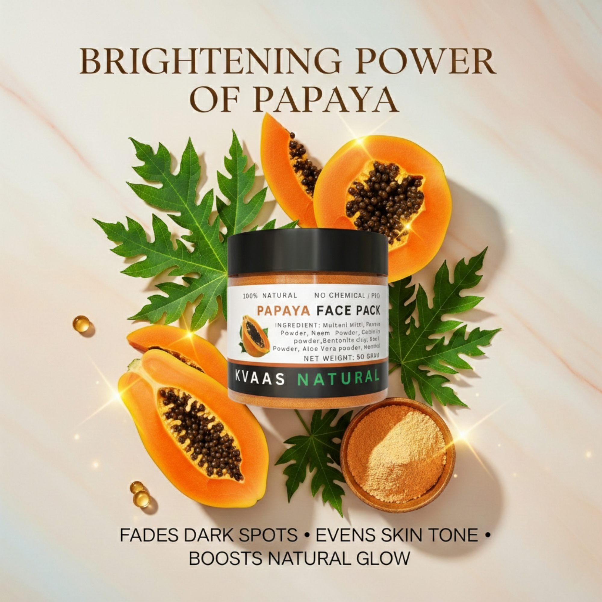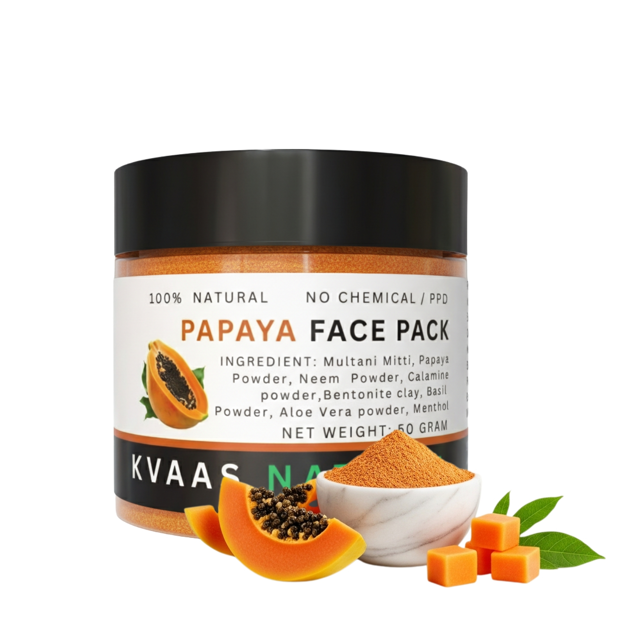 Experience the rejuvenating power of papaya with our Kvaas Natural Papaya Face Pack, crafted from the finest quality papaya extract. Rich in vitamins A, C, and E, papaya is known for its exfoliating and skin-renewing properties. This nutrient-rich, chemical-free face pack is perfect for brightening, smoothing, and revitalizing your skin, leaving it looking fresh, radiant, and youthful.