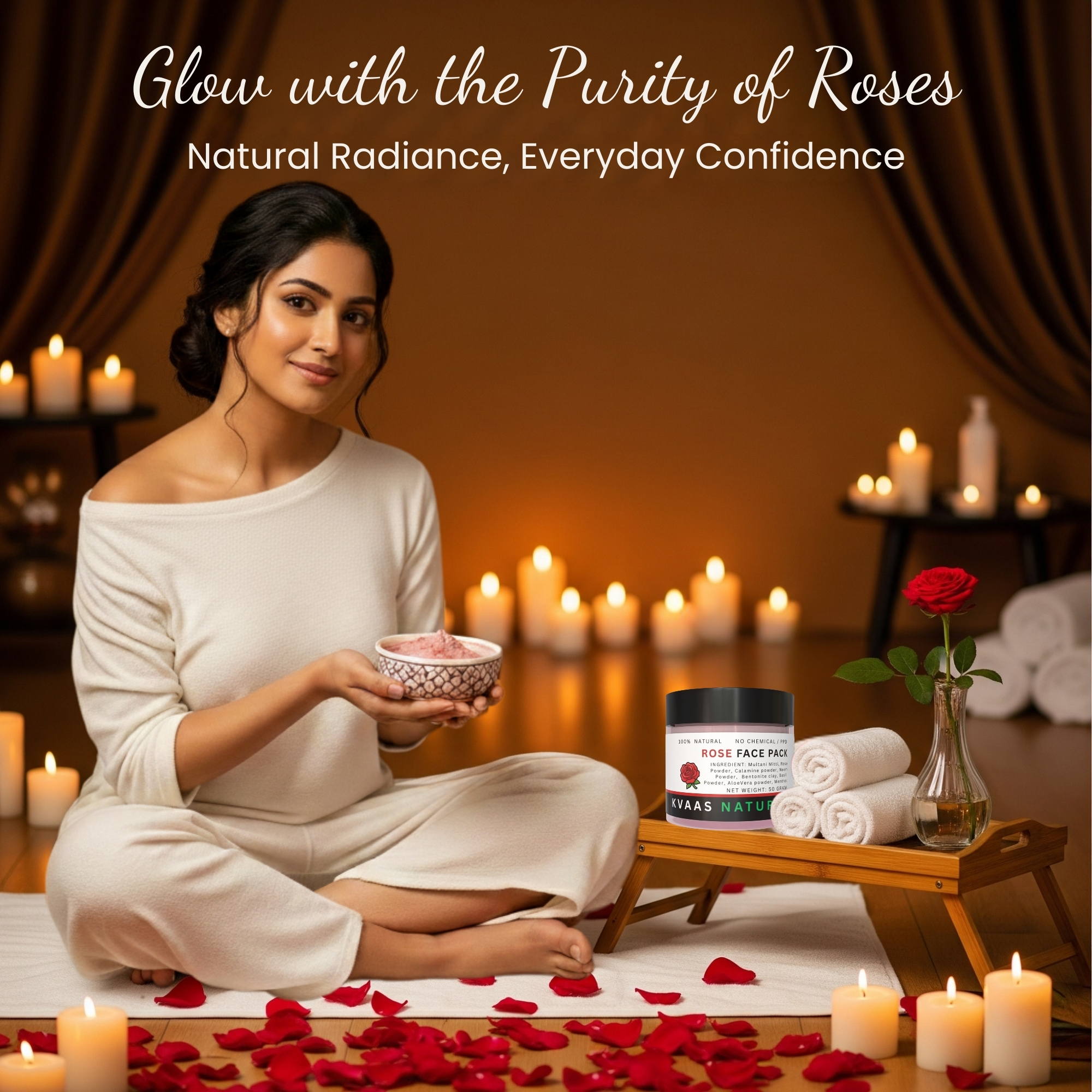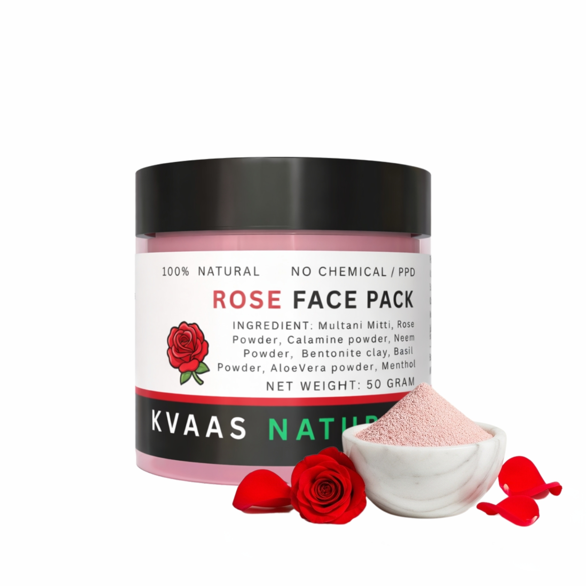Indulge in the luxurious essence of roses with our Kvaas Natural Rose Face Pack, formulated with premium rose petals and natural ingredients. Renowned for its hydrating and soothing properties, rose is a timeless beauty secret for glowing skin. This nutrient-rich, chemical-free face pack is perfect for moisturizing, rejuvenating, and brightening your skin, leaving it feeling soft, radiant, and refreshed.