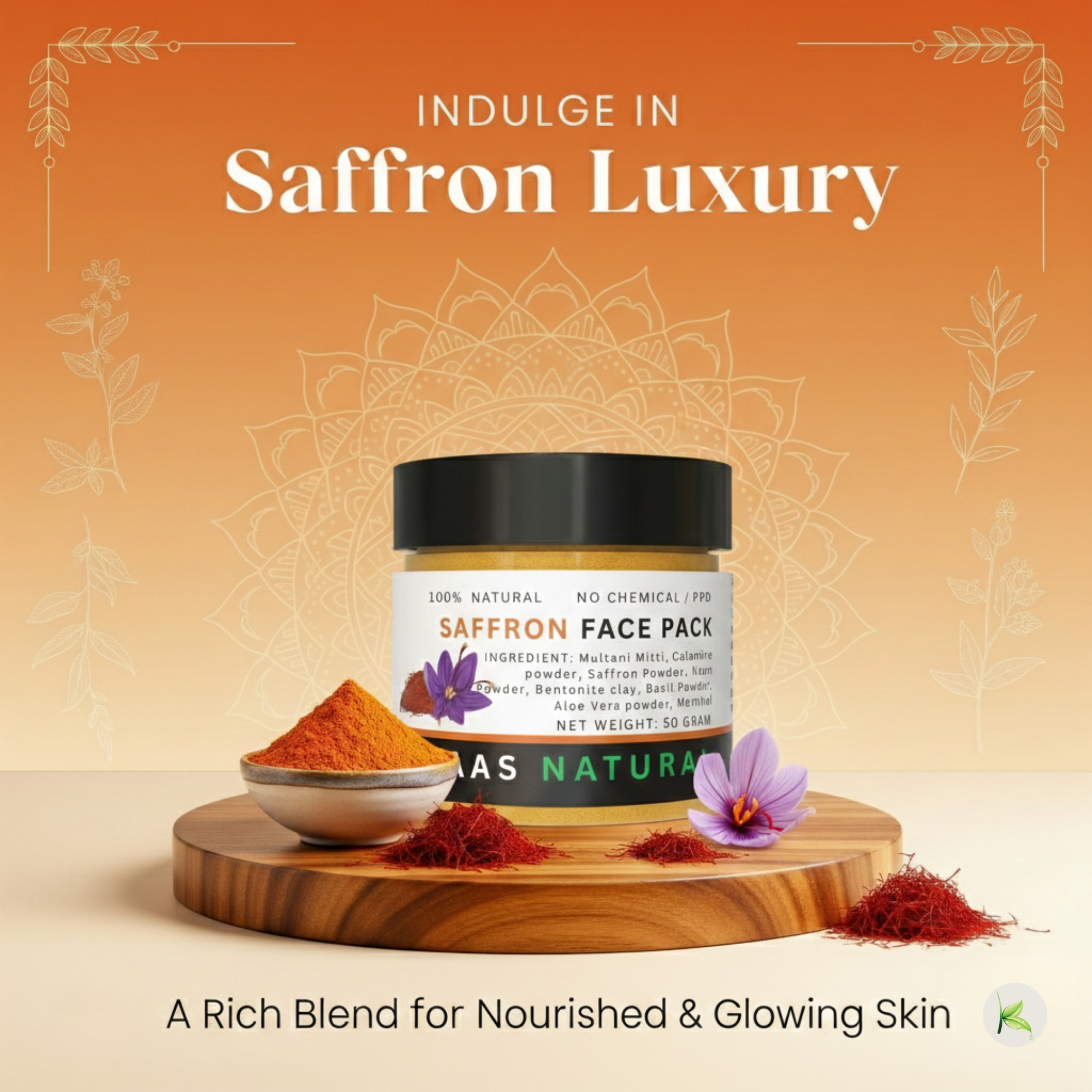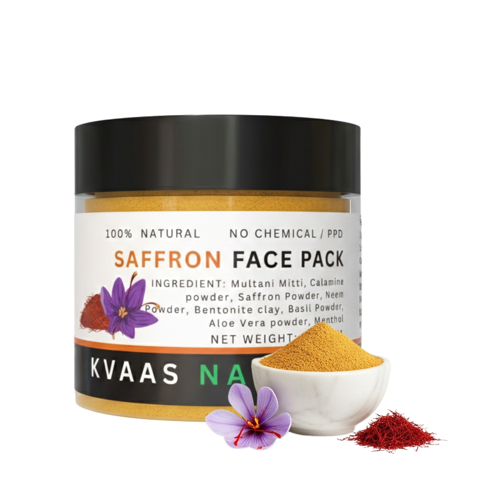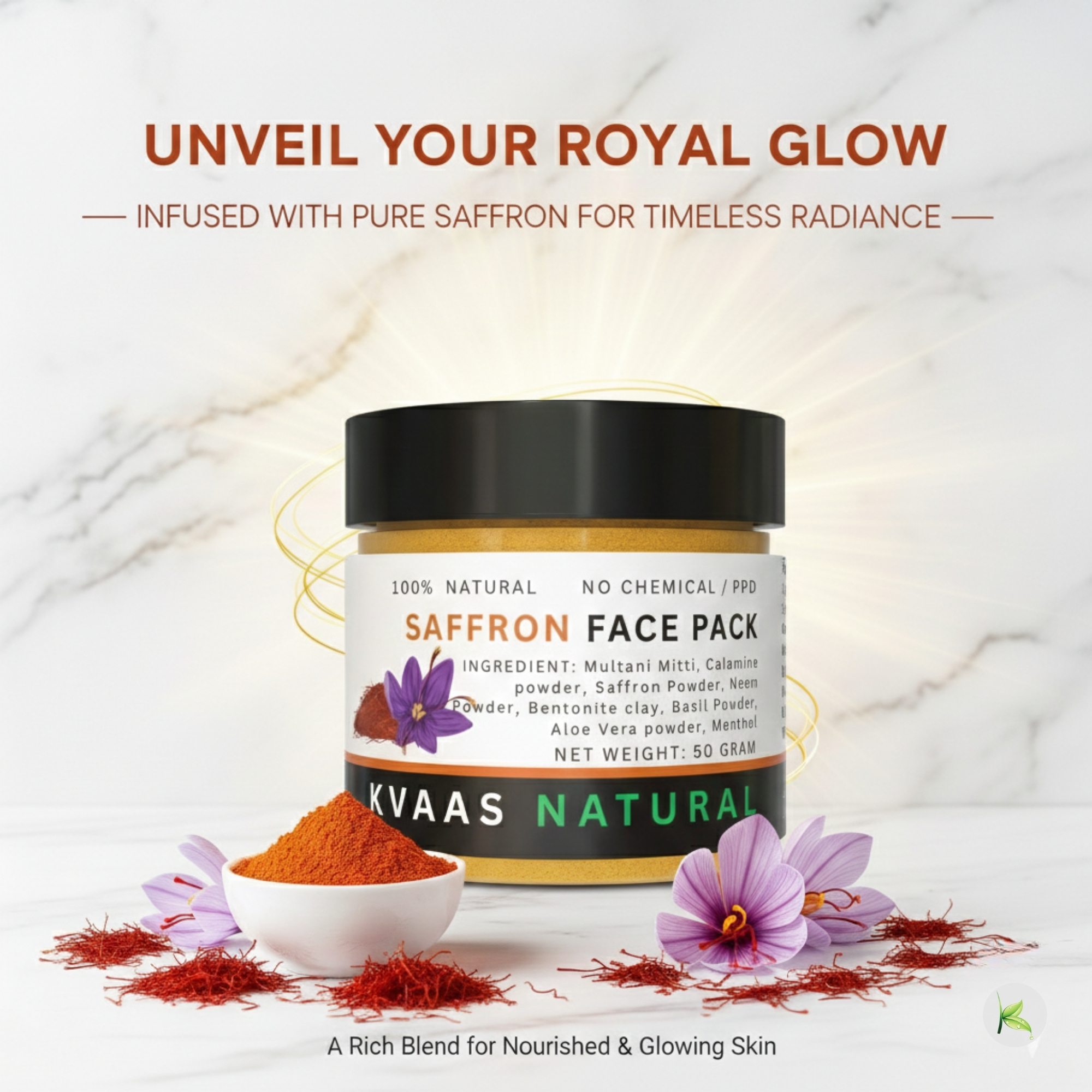 Experience the luxurious benefits of saffron with our Kvaas Natural Saffron Face Pack, crafted from premium-quality saffron strands and natural ingredients. Saffron, known as the “golden spice,” has been treasured for centuries for its brightening and rejuvenating properties. This nutrient-rich, chemical-free face pack is perfect for hydrating, illuminating, and revitalizing your skin, leaving it glowing with radiance and vitality.