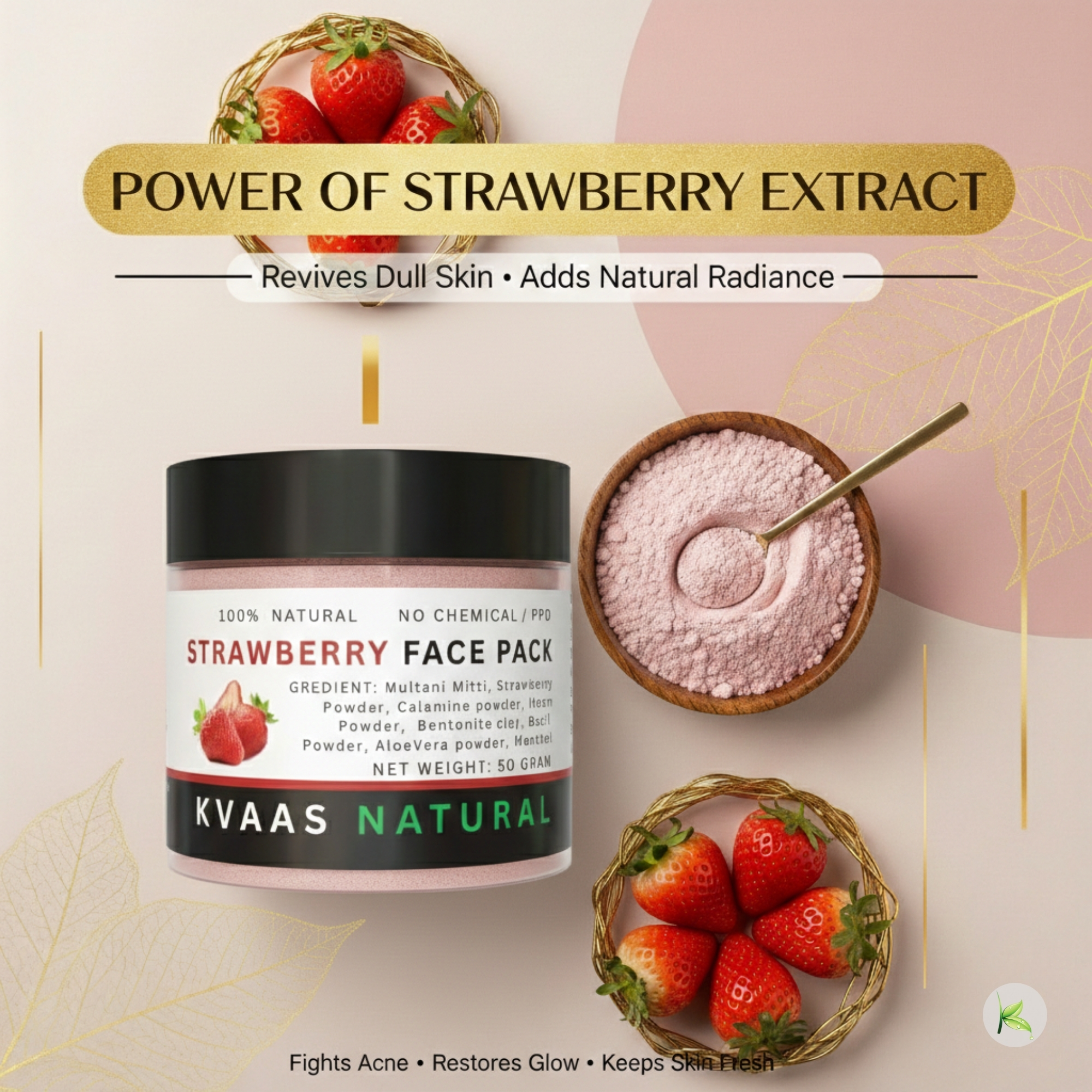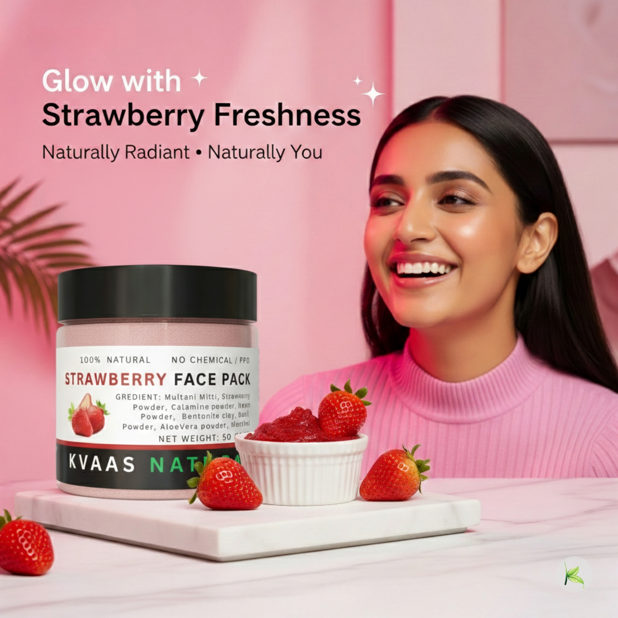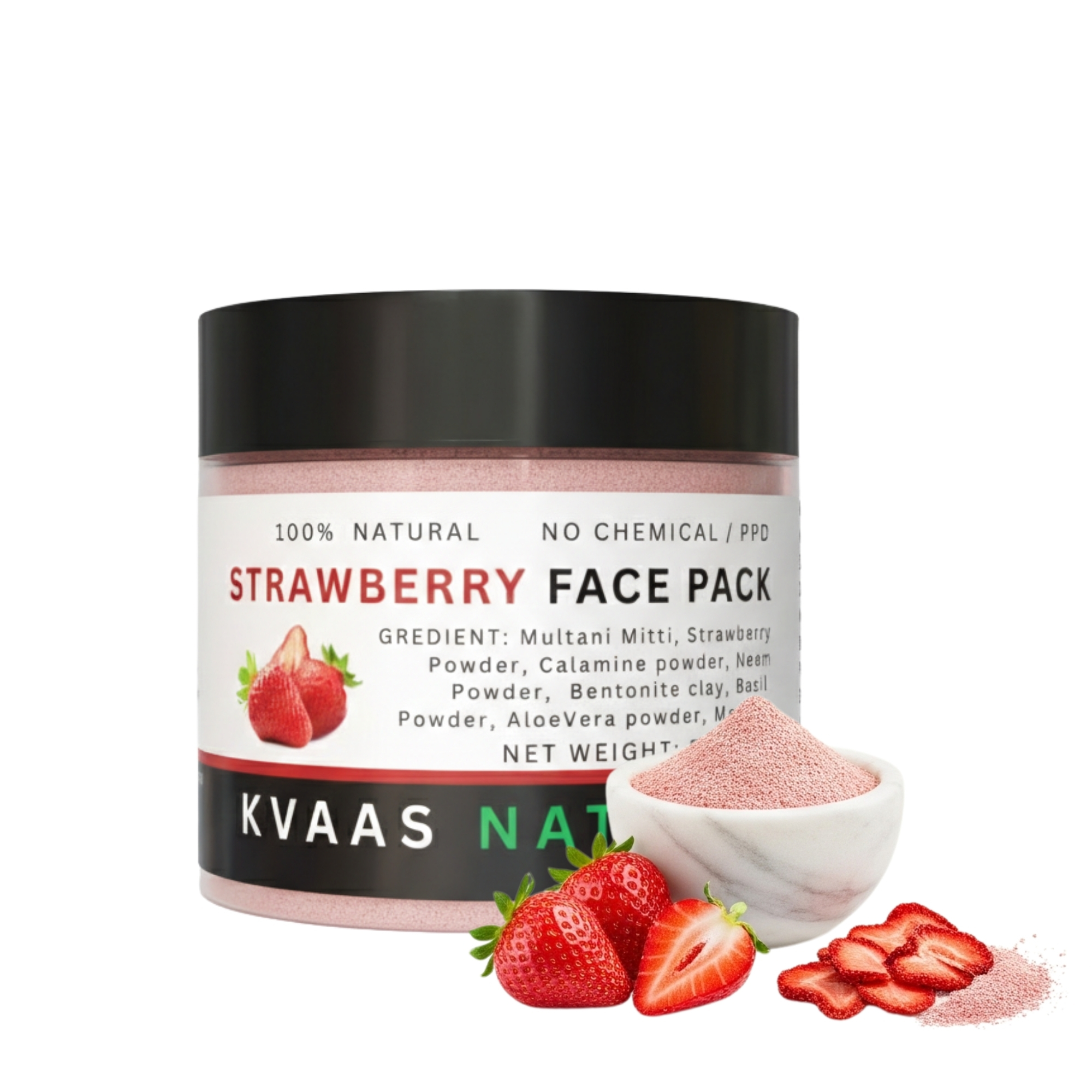 Indulge in the sweet essence of strawberries with our Kvaas Natural Strawberry Face Pack, formulated with premium-quality strawberry extracts and natural herbal ingredients. Rich in vitamins and antioxidants, strawberries help nourish the skin, improve brightness, and support a healthy glow.